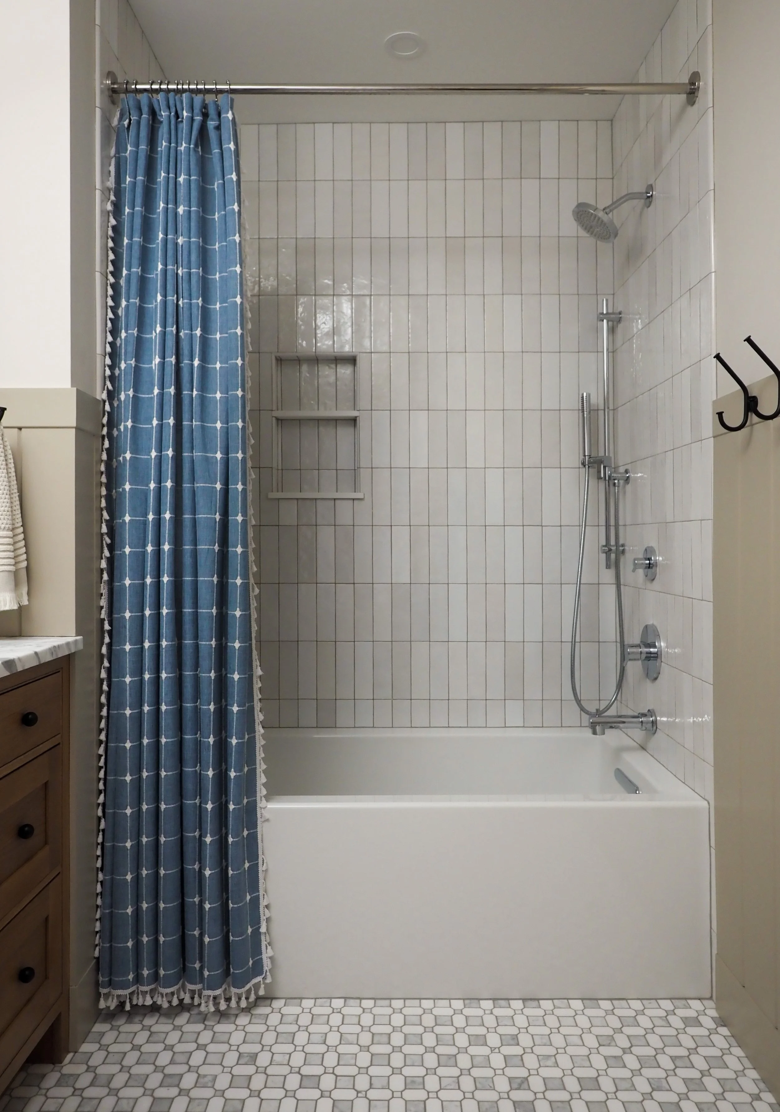 This hall bathroom renovation addressed a severely compromised layout that made everyday use both difficult and unsafe. A previous renovation had introduced a raised platform around the tub, with the vanity placed on top of it – creating a tight, awkward utility zone that made shared use nearly impossible for a growing family.